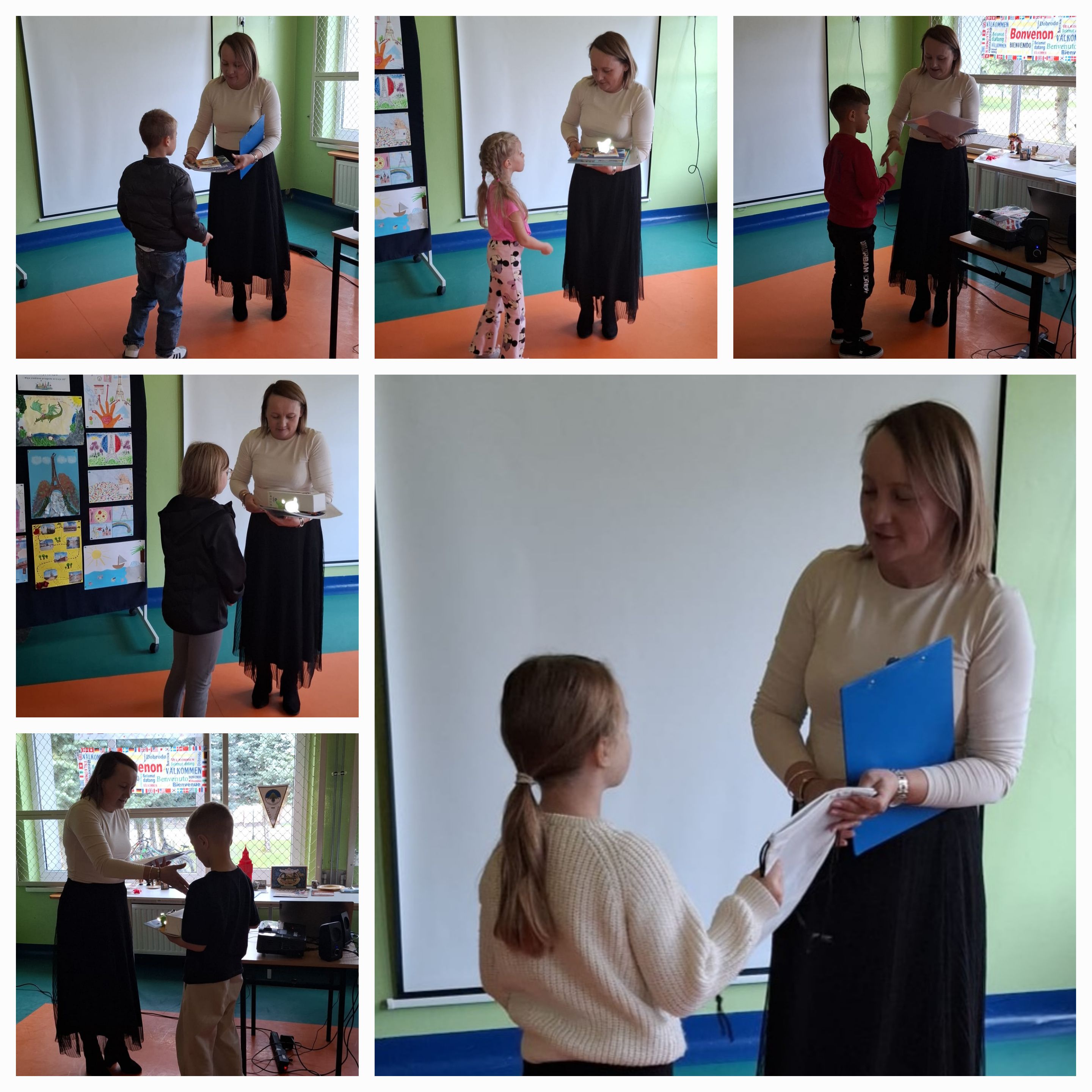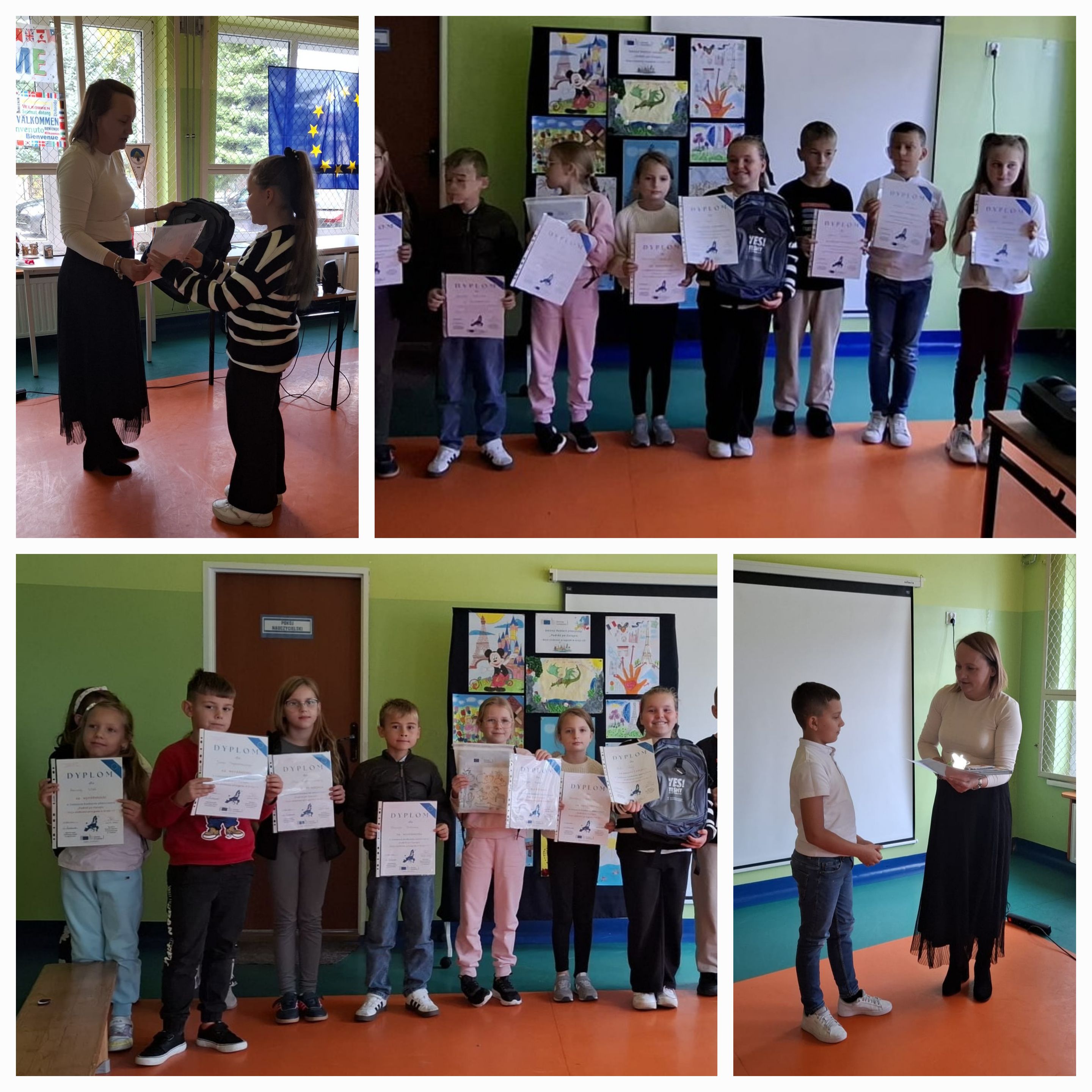 Podczas podsumowania, które odbyło się 26 września, uczestnicy konkursu wraz z opiekunami uczestniczyli w wirtualnej podróży po Europie i poznawali ciekawostki dotyczące krajów europejskich. Komisja konkursowa nagrodziła 12 uczestników najciekawszych prac. Zwyciężczynią konkursu została Zofia Wolf. Drugie miejsce przyznano Marii Czop i Szymonowi Hadasiowi. Miejsce trzecie przypadło Adamowi Dylusiowi i Mai Bystrzykowskiej. W gronie wyróżnionych znaleźli się: Nikola Kordecka, Marysia Kocot, Amanda Sitek, Natalia Grądys, Barbara Bździon, Błażej Dobosz i Jan Szymański.