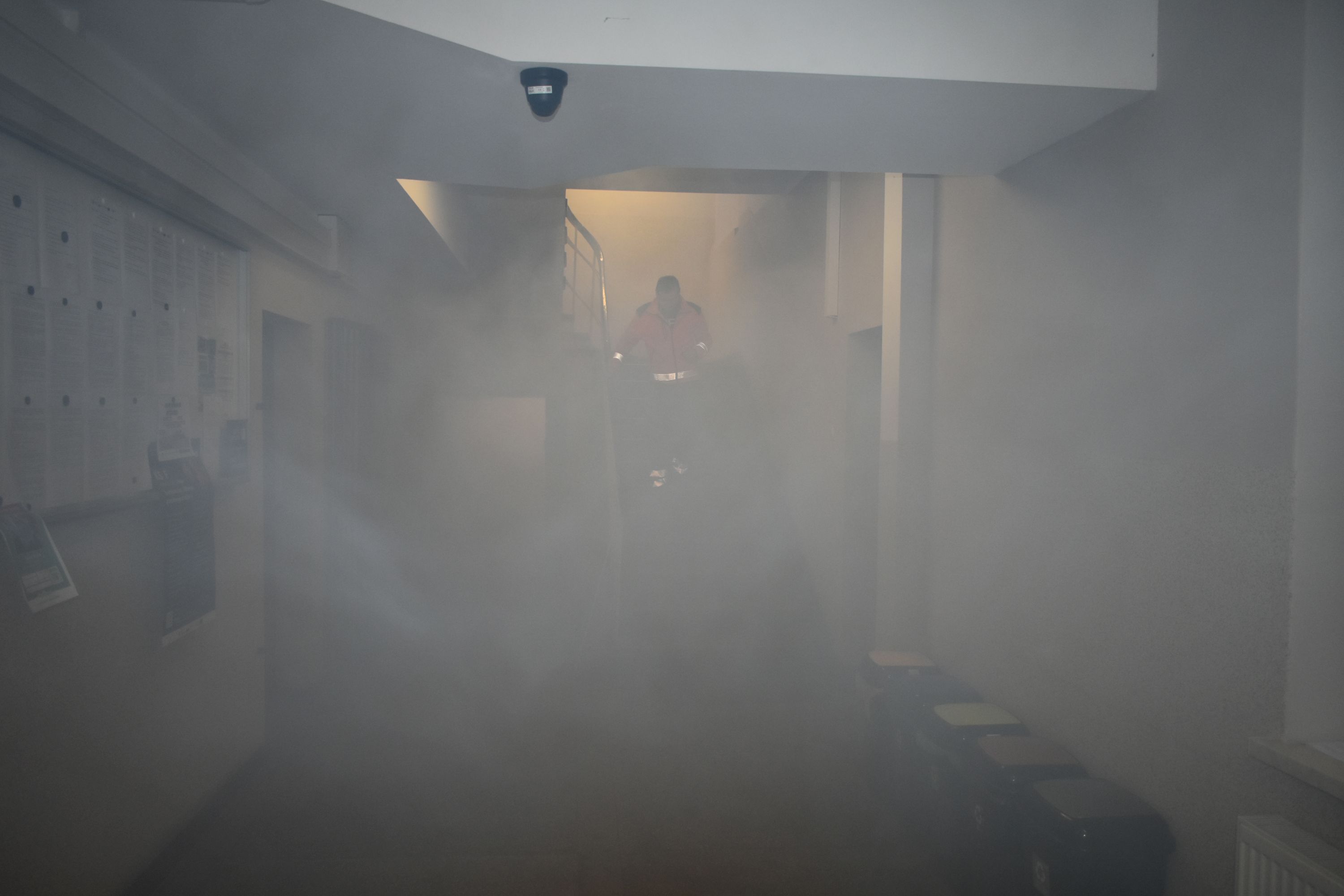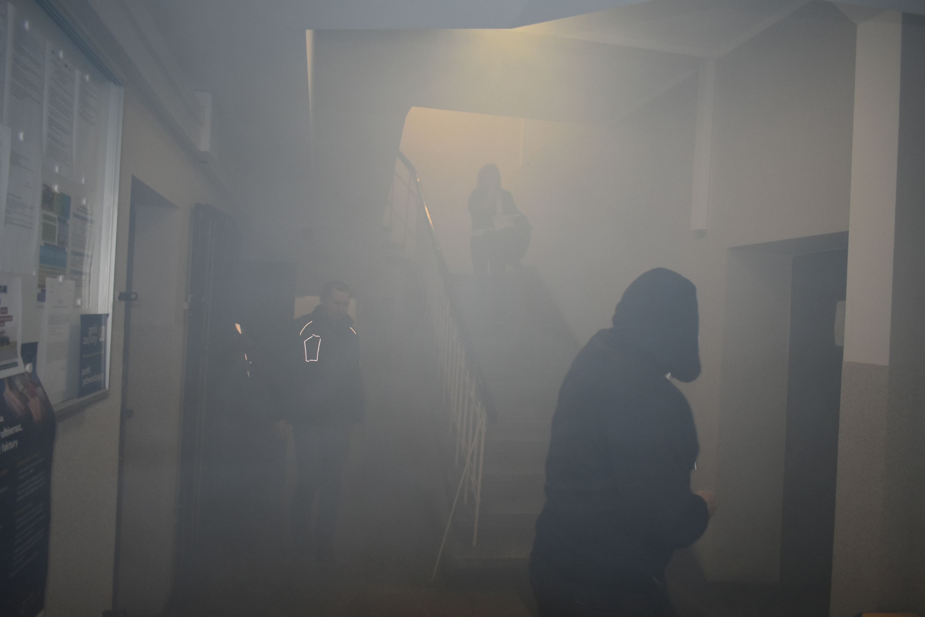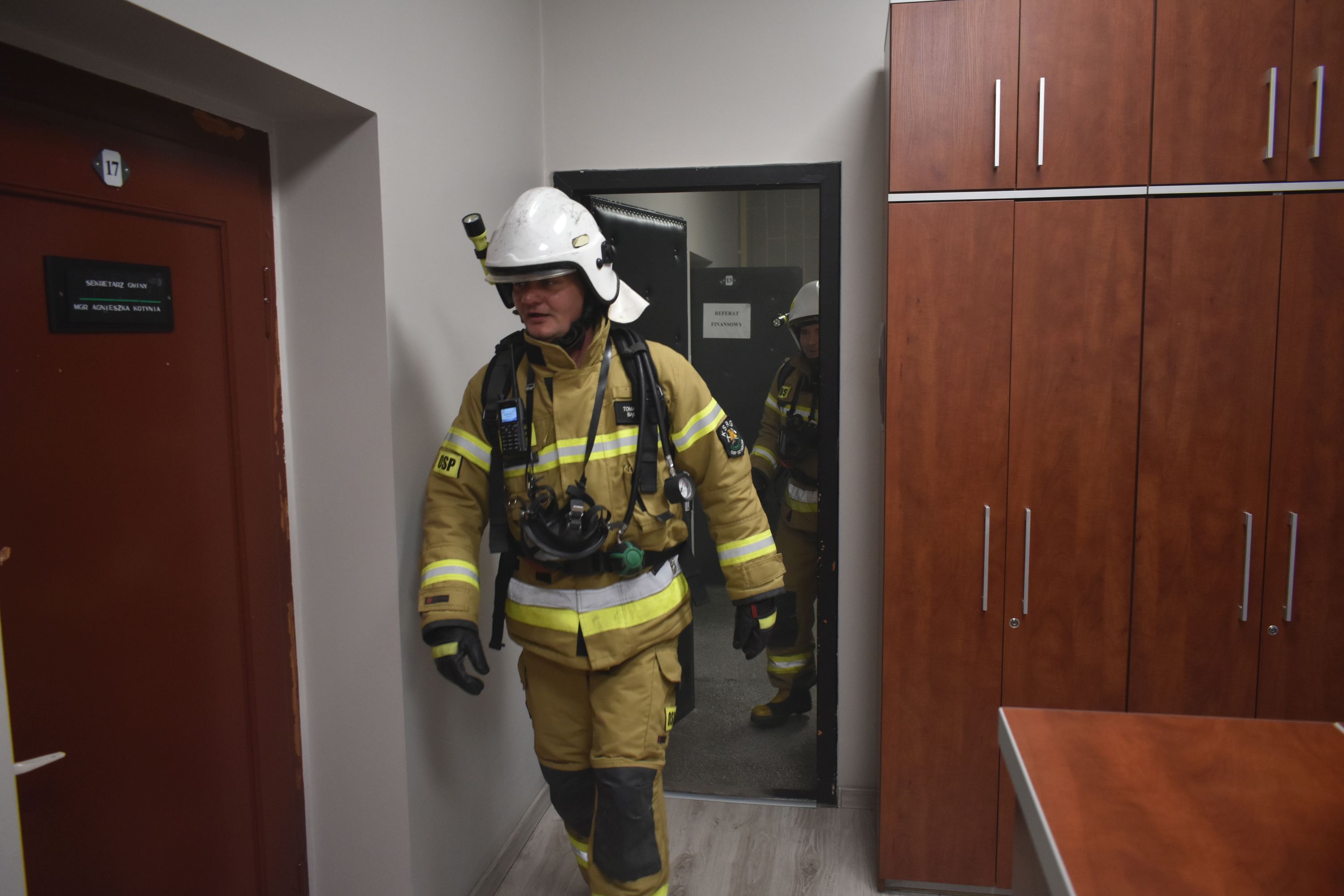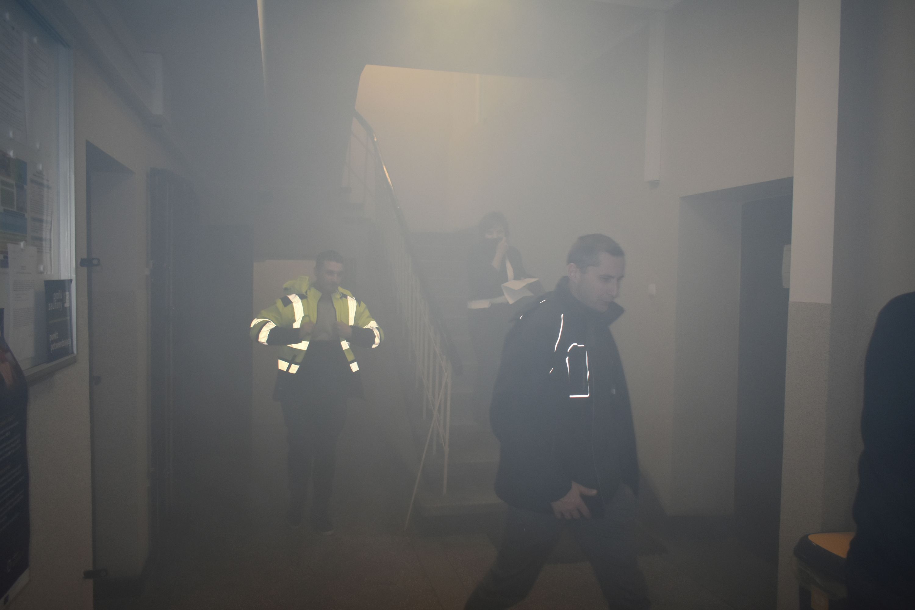 Scenariusz zakładał dostrzeżenie około godziny 15.00 zadymienia korytarzy urzędu, którego źródłem – jak się okazało – był pożar w kotłowni. W reakcji na dostrzeżenie tego zagrożenia kierująca w tym momencie pracą urzędu sekretarz Agnieszka Kotynia zarządziła natychmiastową ewakuację wszystkich przebywających w urzędzie osób. Jednocześnie zostały wezwane służby ratunkowe.