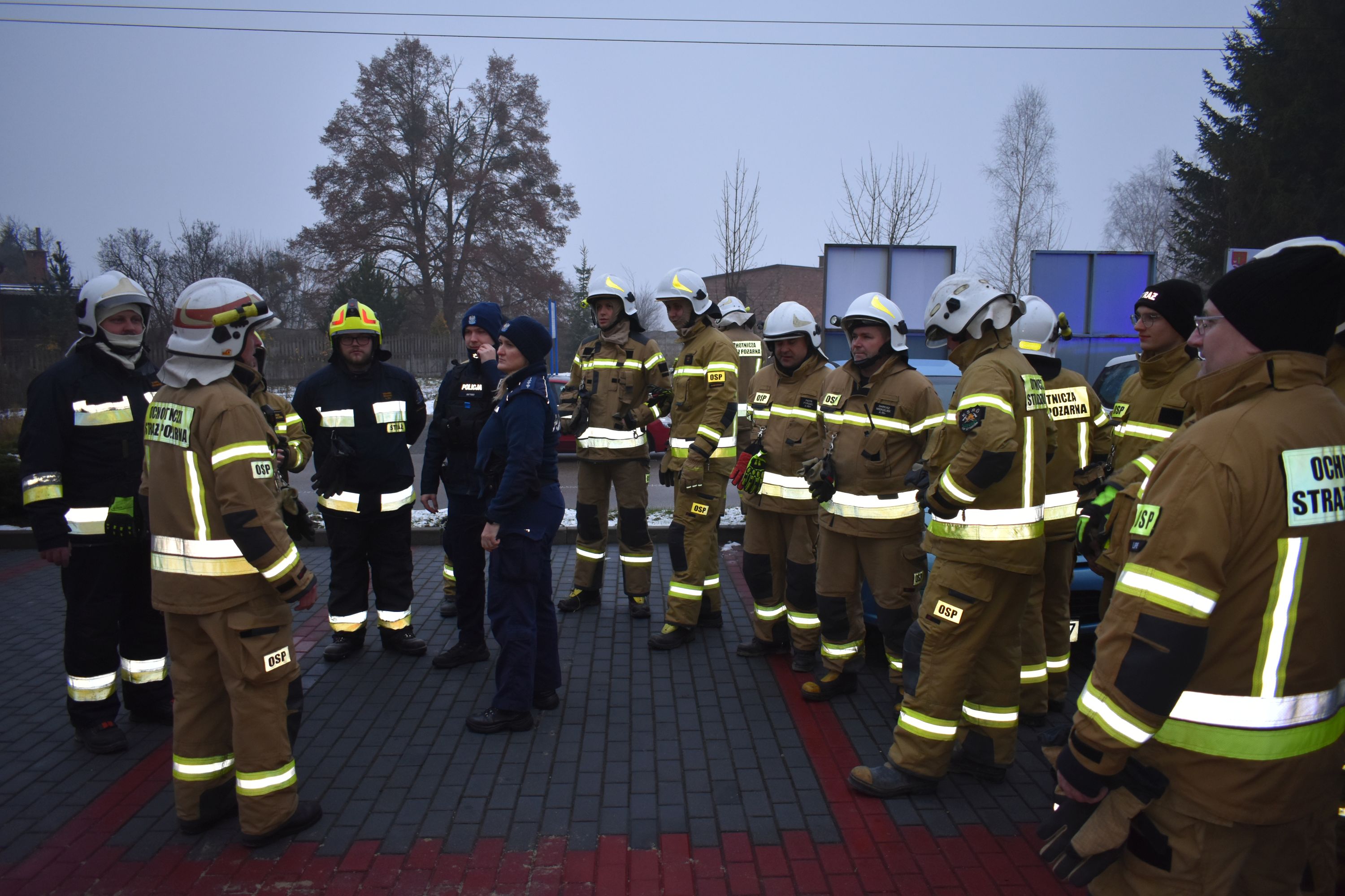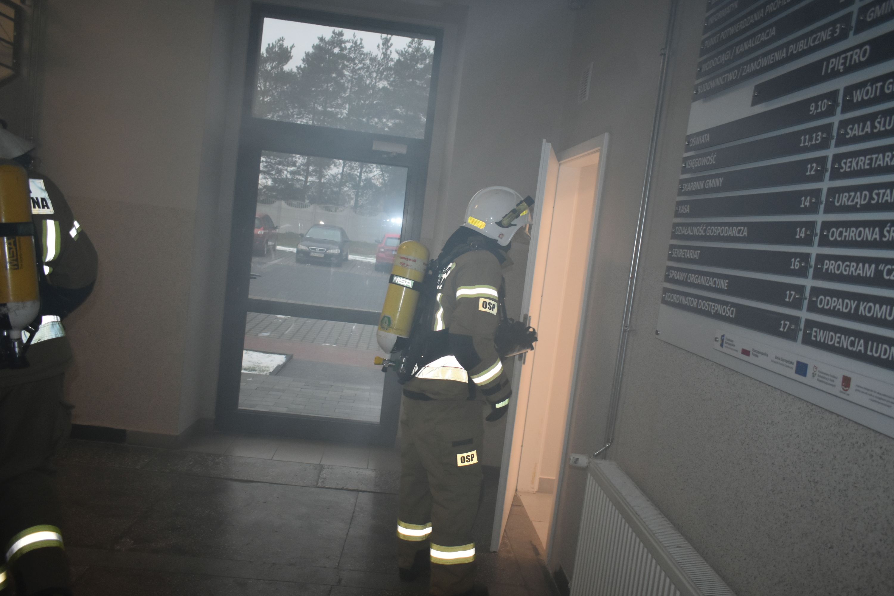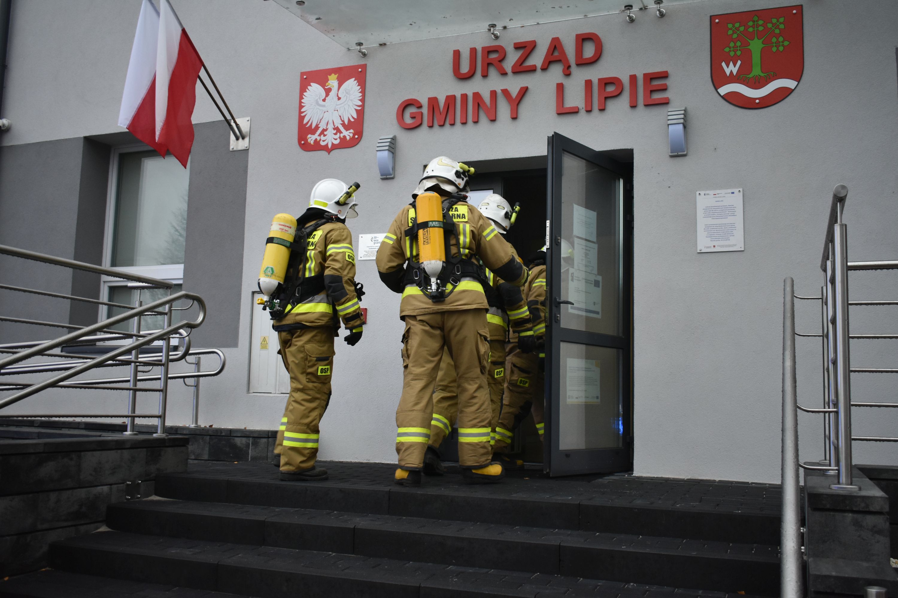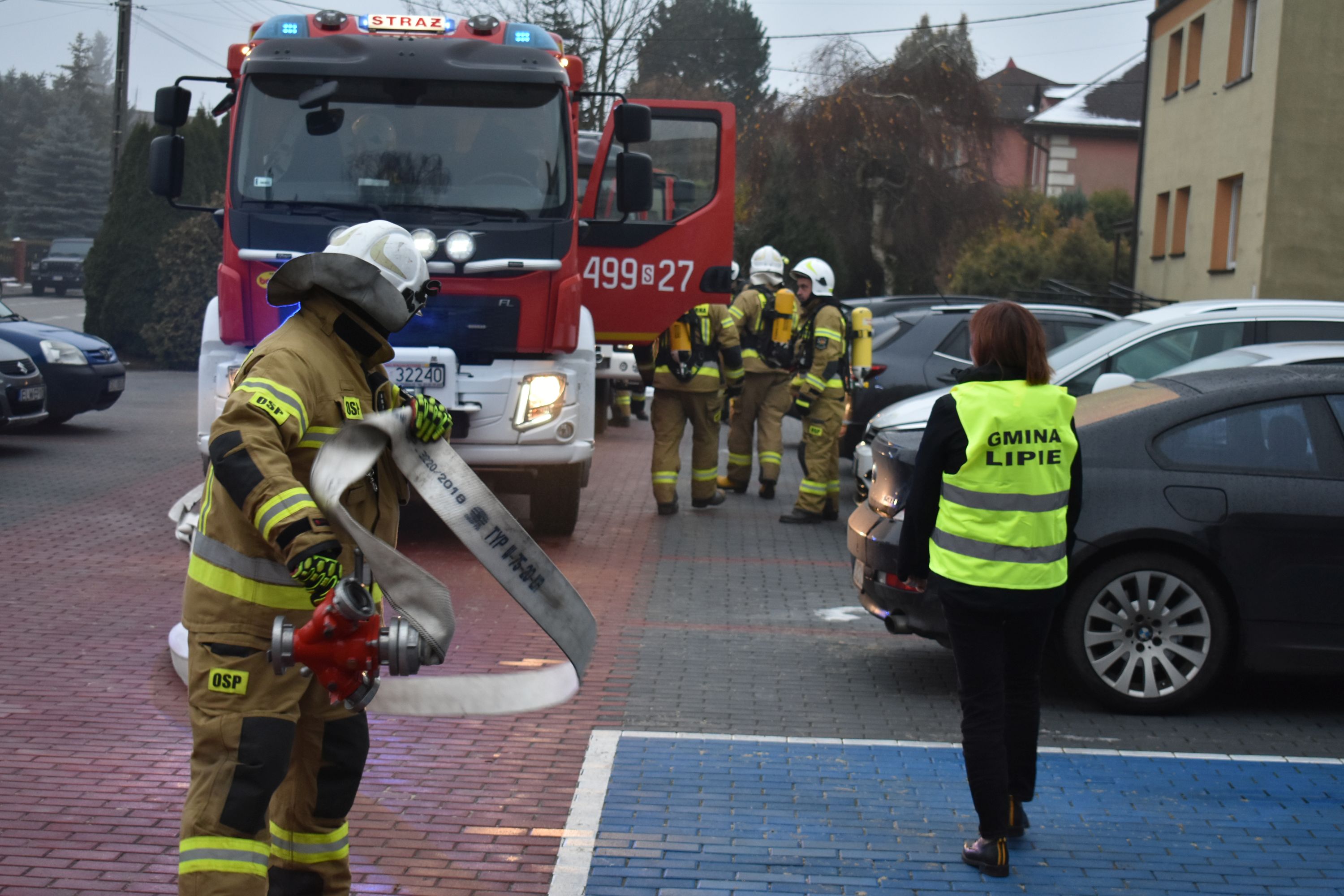 Po przeprowadzeniu ewakuacji stwierdzono, że wśród zgromadzonych w wyznaczonym punkcie przed urzędem gminy brakuje dwóch pracowników. W tym samym czasie na miejsce zdarzenia dotarły zastępy straży pożarnej z jednostek OSP z Lipia, Parzymiech i Szyszkowa oraz patrol policyjny skierowany przez Komendę Powiatową Policji w Kłobucku. Informacje o pożarze kotłowni, zadymieniu budynku, ewakuacji i możliwości pozostawania w budynku osób wymagających pomocy przekazane zostały dowodzącemu akcją druhowi Mariuszowi Patockiemu. Strażacy, wyposażeni w sprzęt pozwalający na prowadzenie działań w warunkach zadymienia, dokonali przeszukania pomieszczeń urzędu i odnaleźli dwie osoby, które niezwłocznie ewakuowali z miejsca zagrożenia. Równocześnie skutecznie przeprowadzone zostało gaszenie pożaru.