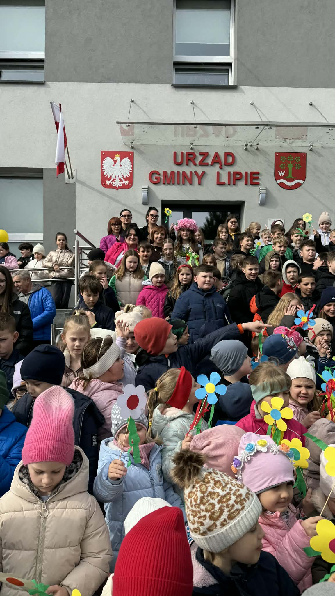 Z okazji pierwszego dnia wiosny przed Urzędem Gminy Lipie odbyło się radosne spotkanie z udziałem dzieci ze żłobka, przedszkolaków oraz uczniów Zespołu Szkolno-Przedszkolnego w Lipiu.