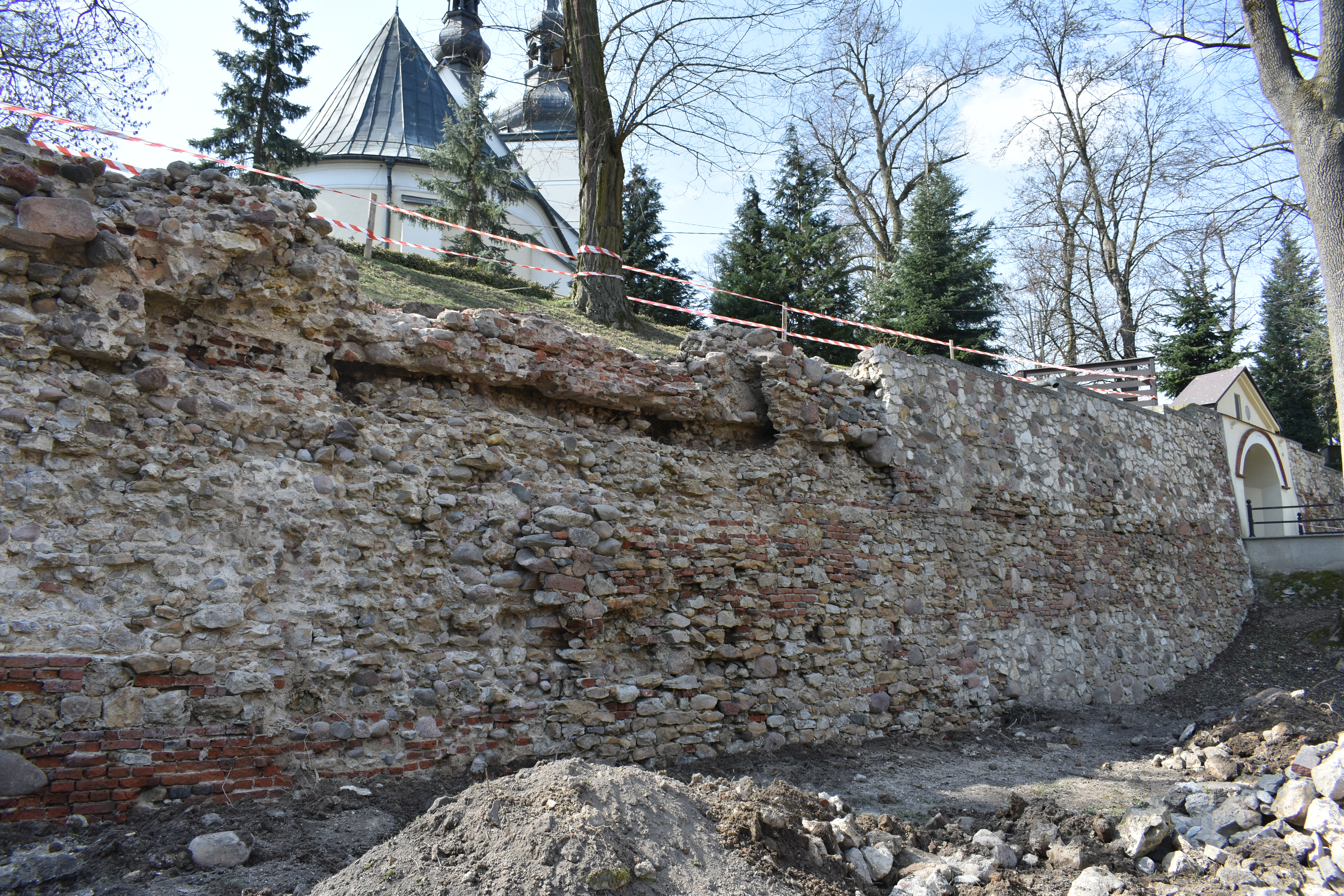 W miejscu odkrycia średniowiecznych cegieł odsłonięto także bardzo ciekawe elementy architektoniczne, które dają się powiązać ze średniowieczem. Czym dokładnie one są – będą w stanie określić specjaliści. Możliwości są dwie: albo są to pozostałości dawnej bramy wjazdowej na teren otoczony murami obronnymi, która istniała w średniowieczu, a potem została zamurowana, albo też są to pozostałości po obiektach przed wiekami przybudowanych do murów obronnych. Niezależnie od rozstrzygnięcia – jest to kolejna rzecz z dalekiej przeszłości Dankowa odsłonięta teraz, podczas prowadzonych prac renowacyjnych, a wcześniej w zasadzie zupełnie nieznana.