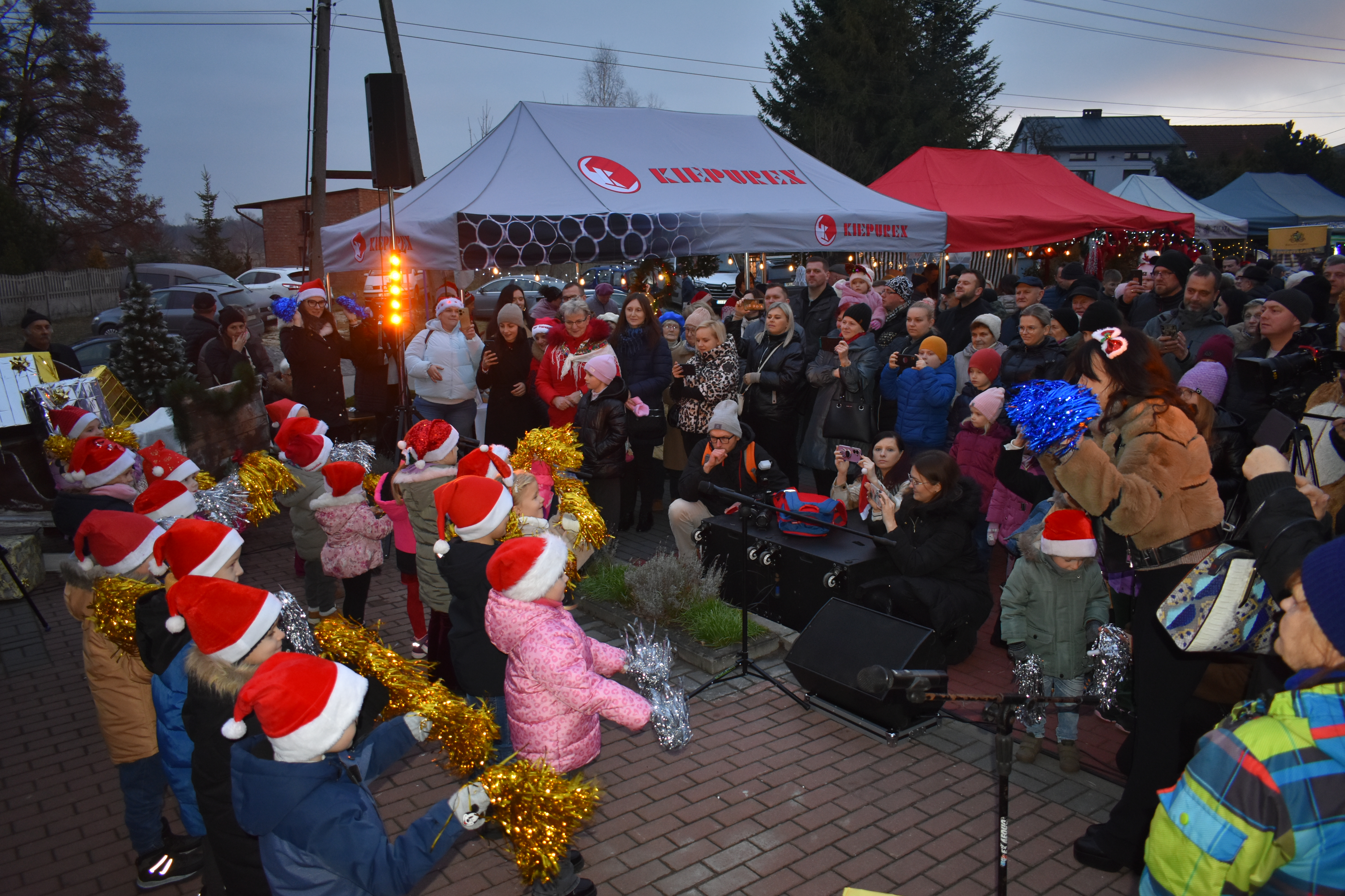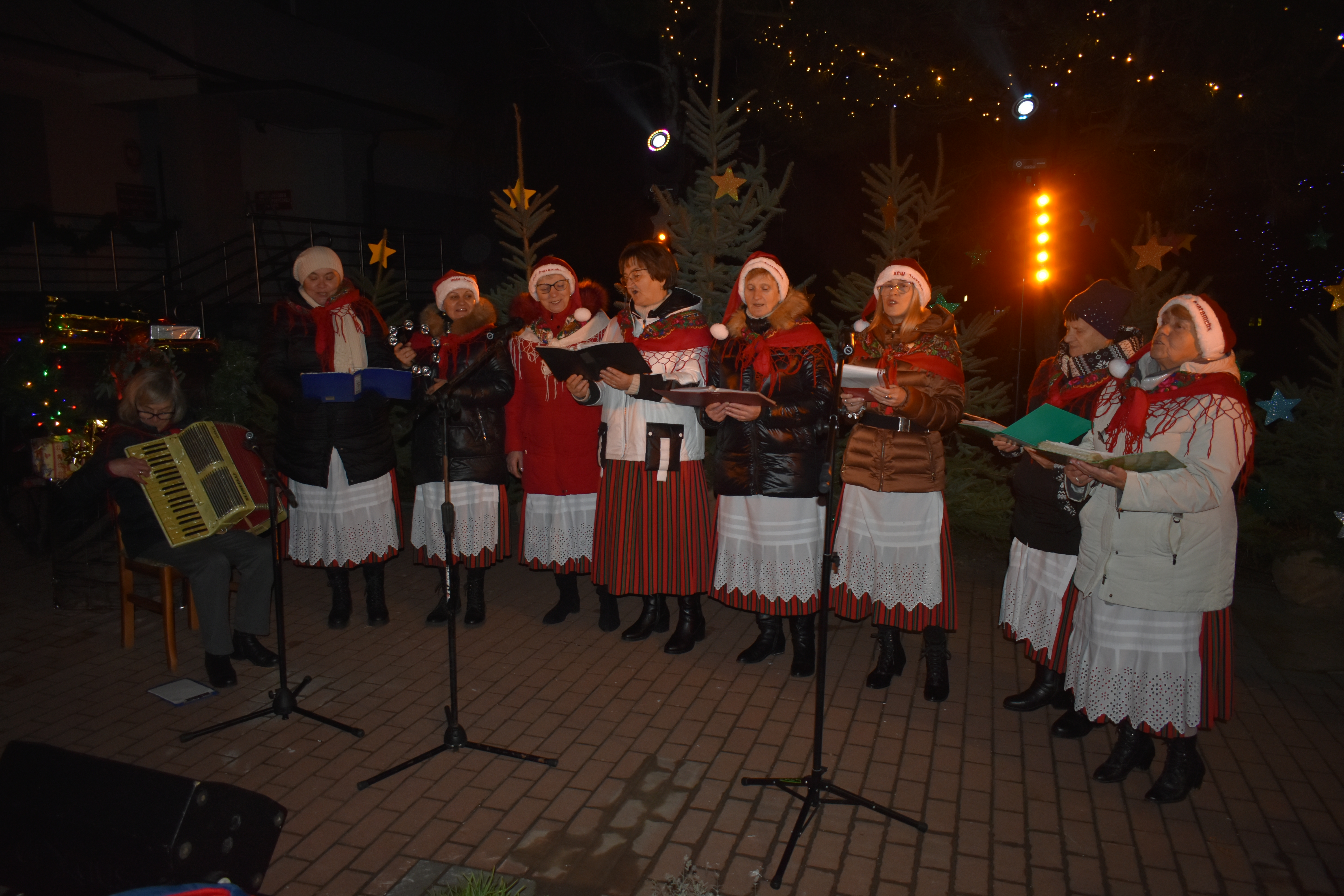 Przy zapalonej już choince impreza trwała nadal. Pod rozświetlonym drzewkiem odbył się wyczekiwany występ chóru Pasjonata, który zaprezentował kolędy w pełnych harmonii, pięknych aranżacjach, zdobywając uznanie publiczności. Następnie uczestnicy mogli włączyć się we wspólne kolędowanie z zespołem Czeremcha z Koła Gospodyń Wiejskich w Parzymiechach. Po przygotowanych na ten dzień występach jarmark rozbrzmiewał nowoczesnymi świątecznymi hitami i kolędami w klubowym brzmieniu, przygotowanymi przez DJ-a.